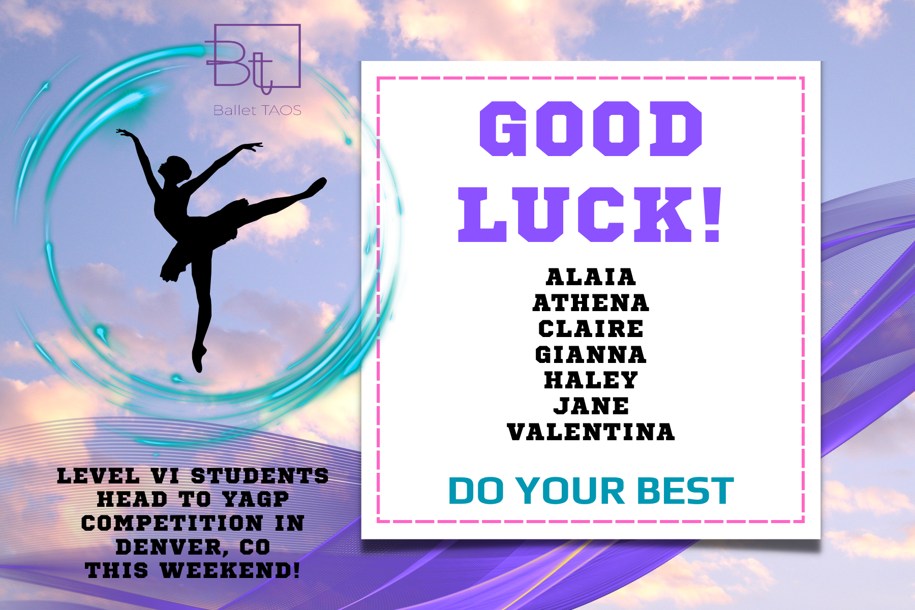 The Apprentice Program serves as a bridge between training and professional experience, allowing dedicated young artists to rehearse and perform alongside the Ballet Taos Company, our ensemble of advanced and adult dancers committed to innovative, collaborative work.