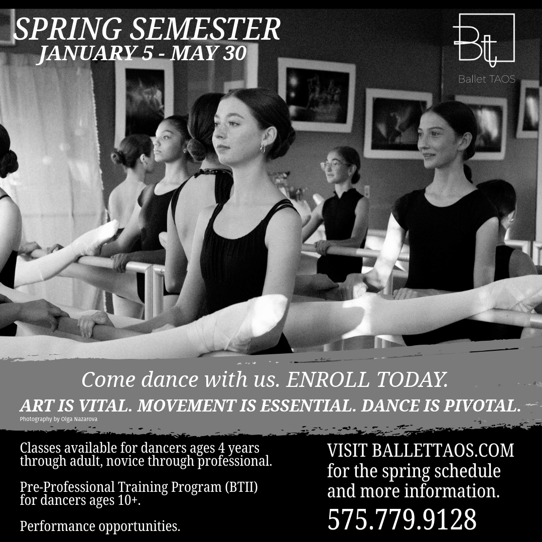 The Ballet Taos Academy offers rigorous, developmentally aligned training grounded in strong technique and artistic exploration. As dancers advance, they may be invited into our Pre-Professional Division, an immersive track that deepens their daily practice, expands their performance opportunities, and nurtures emerging choreographic voices.
